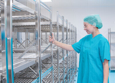 For elevated workstations where mobility is required, the Bimos saddle stool provides a flexible and robust solution. With extra-large castors, it enables smooth movement while maintaining ergonomic comfort, even during frequent position changes. Its intuitive seat height adjustment makes it suitable for various workstation heights, while its cleanable, non-shedding materials ensure compliance with strict hygiene requirements. A cleanroom-specific saddle stool is also available for ultra-clean environments.