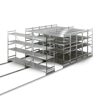 Space-saving shelving for sterile environments