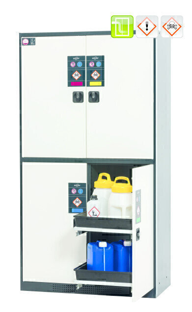 Leading European manufacturer, asecos, now brings you their latest cabinet models for the storage of a wide range of chemicals and toxic substances. The new CS-CLASSIC cabinets are divided into several sections so that hazardous materials can be safely stored in up to four separate and lockable compartments.