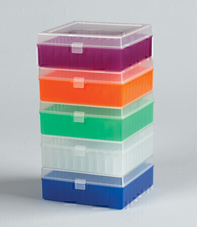 Scienceware® 81 and 100-place Polypropylene Freezer Storage Boxes with alphanumeric labeling provide compact storage and keep 0.5, 1.5 and 2.0ml cryovials and micro tubes organized on the bench, in the freezer or during transport. Use at temperatures -80°C to +121°C.