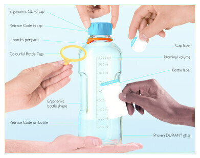 The accurate labelling of scientific samples is an integral part of the success of a laboratory. Labels carry critical information and without them research could be unreliable and possibly invalid. There are many ways that bottles can be labelled. Research by Duran Group indicated that users use a wide range of labelling materials and formats such tape, pre-printed, blank labels and or autoclave tape, for labelling bottles. Many labels used in laboratories can be difficult to remove after use, resulting in scratched bottles and extra time wasted cleaning. The DURAN® YOUTILITY labels were developed to address the need for a reliable, short term method of sample, cap and bottle tracking and identification. The labels will stay on when you need them to do so, and are easy to remove when no longer required. This allows the bottles and caps to be quickly and easily cleaned, ready for re-use.