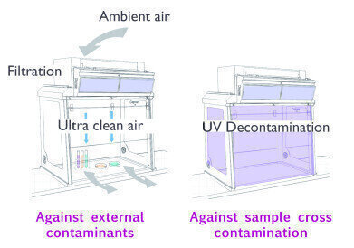 This new line has been designed to perform non pathogenic handlings such as sample preparations before thermocycling, Post PCR DNA sequencing revelation / separation, in vitro fertilization, cellular cultures, vegetal biology, preparation of sterile solutions, and to save samples, time and money!