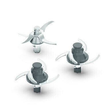 The standard knife made of stainless steel can be used for comminution of nearly all materials due to its four blades and a well-conceived geometry. For comminution of brittle, hard samples we recommend the sickle knife made of stainless steel. The sickle knife with serrated blades is ideal for grinding especially fibrous, tough or sinewy samples, such as fish, meat, asparagus or bamboo.