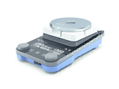 With an 850W motor, the RCT 5 digital magnetic stirrer now offers significantly more power and has a ceramic-coated set-up plate; there is also an adapter for using round heating and reaction blocks. The NANOSTAR 7.5 digital is only the size of an apple and is designed for stirring quantities of up to 5 litres. It provides constant torque over the entire speed range.