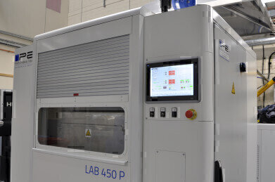 The platen press is a P.E.I. Pinette model LAB 450 P with 400mm x 400mm platens, a press force up to 30 tonne, electric platen heating up to 450C with an integral touch screen incorporating state of the art control of press functions including recipe building, storage, download and internet connection for remote operation/diagnostics.