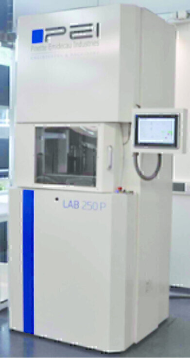 The platen press is a P.E.I. model LAB 250 P with 400mm x 400mm platens, a press force range 3 to 60 tonne, electric top and bottom platen heating to 450â with an external, hinge mounted touch screen incorporating state of the art control of all press functions including recipe building and storage.