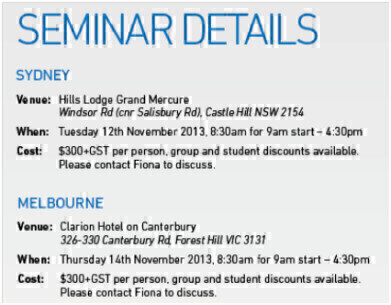 To attend the seminar, please fax, email or call 03 9873 0200.