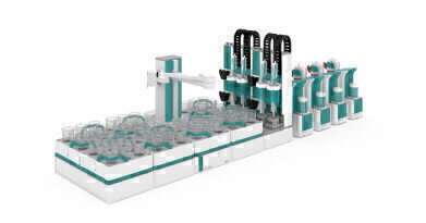 The OMNIS Sample Robot can be expanded in three steps from size S to M to L, which accommodates up to 112 samples evenly distributed over seven racks. OMNIS is flexible: Racks with urgent samples can be prioritised and placed on the Sample Robot while the system keeps analysing.