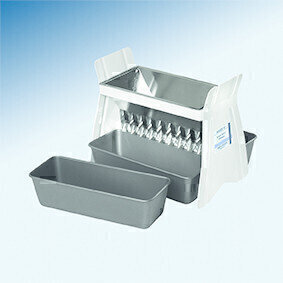 As a rule the amount of material taken for an analysis is much too large. A partial amount is used as a representative test sample for the total amount. To do this there are a number ways to take test samples. The extracted sample is, however, much too big for the actual analysis. Thus it is necessary to split up the sample until a representative partial amount is reached. The classic method is the complete splitting of the material amount by quartering the original amount, whereby 2 quarters of the original amount are removed. The remainder then gets remixed and quartering is repeated until the right amount remains. This process, however, is very time-consuming and involves much effort and has long since been simplified by the sample splitting. One device that has proven itself is the furrowed sample splitter whereby the original material amount is split up by furrows that are arranged closely to each other and the material is fed into two different receiver bowls. Half is removed and the other half is once again put through the same process and divided up until the right amount is reached. Here HAVER & BOECKER offers different sized sample splitters. Choosing the right size splitter should be done to match the maximum particle size in the material sample. Every particle needs to have the possibility of passing through a splitter opening. For larger sample sizes there is also the so-called sample reducer, whereby the sample is divided up into a fraction of the original amount.