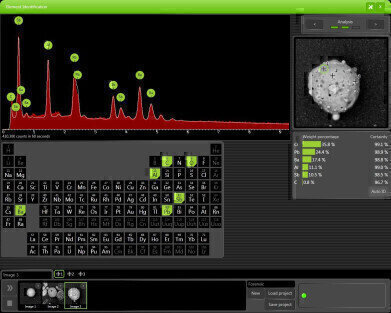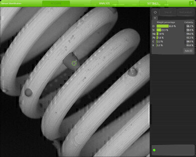 With the Phenom desktop SEM, forensics investigators can easily image a light bulb filament and perform elemental analysis. If a vehicle headlight, rear light or indicator is on at the time of an accident, the lamp filament will be hot and glass particles will melt onto it. Different glass particles can be shown and analyzed with the desktop SEM and used as evidence when investigating causes of accidents.