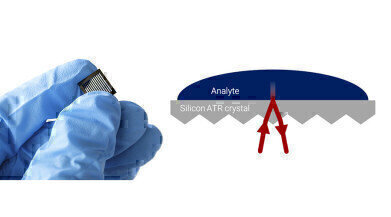 The AutoATR merges an exciting new ATR crystal developed via microtechnology with a microtiter plate platform offering precision mechanics and automated software control. Using a 24-well microtiter plate format enables 24 unique ATR measurements to be conducted within one run. At the heart of this accessory is a single reflection ATR crystal made from 500-µm thick silicon functionalised with multiple microprisms, which couples the light into the crystal. Silicon, in this thin 500-µm form, is an ideal multipurpose ATR element. It has an extremely inert sampling surface and is suitable for use with substances having a pH between 1-12. The changeable ATR crystals also offer the opportunity to store the samples and to prepare different samples at the same time (i.e. drying).