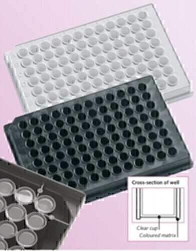Incorporating individual clear cups moulded into either a black or white polypropylene matrix using a patented `two-shot` manufacturing process totally eliminates the well-to-well optical crosstalk inherent with other clear-bottomed microplate designs. As a result Krystal 2000 plates enable you to achieve unmatched luminescence and fluorescence assay readings in terms of accuracy, repeatability and sensitivity.