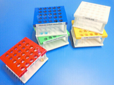 All racks are manufactured from durable plastic, can be colour coded with varying heights, and carry a 5 year guarantee. For full details of the standard range available and to request a design specific to your own requirements, please contact Pro-Lab Diagnostics for a copy of the current gallery. You name it... we can Rack and we can Stack it!