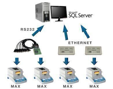 • Moisture analyzers can be connected through mulitport RS 232 card or Ethernet/RS232 converter within Ethernet network;