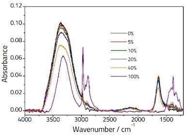Figure 1: Spectra showing various concenrations of Ethanol/Water solutions recorded on an ArrowTM ATR Slide. -