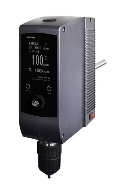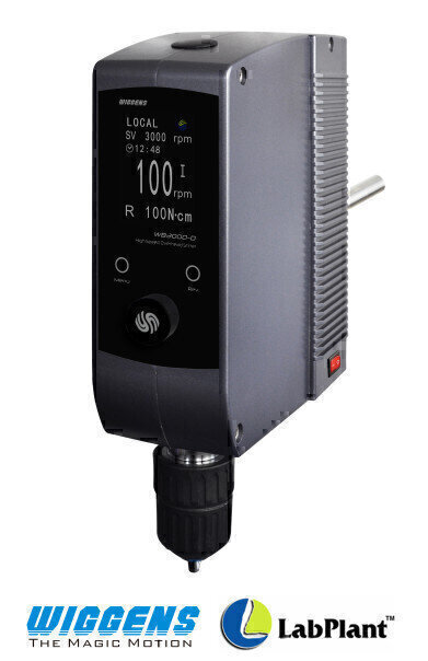Wiggens introduces a new generation of high-torque / high speed overhead stirrers with the WB-3000, WB-1800, and WB-6000 series. These units are specifically designed for high torque applications and / or high speed applications where conventional stirrers reach their limit with regard to sample viscosity or speed requirements.