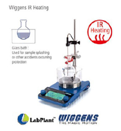 Infrared radiation heating refers to the spectrum between 0.7um-100um of light waves, emission and transmission accompanied by obvious, directional energy transmission. The energy transmission does not need any media, even in vacuum space. The infrared heating uses an electromagnetic wave with a wavelength of 2.5 to 15 um. This speed is much higher than the rate of conduction and convection. Thanks to this radiation heating technology, Wiggens hotplate and stirrer can be used for speedy heating up for various shaped vessels including round-bottom flasks, and the solution inside can be heated up to a maximum temperature of 450°C in a very short time.