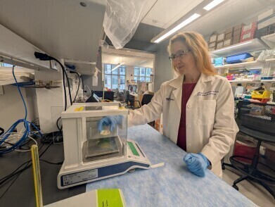 Study authors Drs. Stephanie Eisenbarth and Adam Williams weighing peanuts used in food allergy testing in their lab at Northwestern University Feinberg School of Medicine. Credit: Northwestern University -