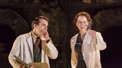 Picture: [From left] Joshua Silver portrays Ray Gosling alongside Nicole Kidman’s performance as Rosalind Franklin in Anna Ziegler’s play ‘Photograph 51’ at the Noël Coward Theatre in the West End of London. Credit: Johan Persson, MGC. -