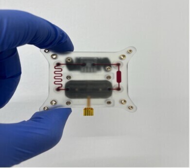 Frontier Space in-house 3D printed microfluidic chip incorporated with microfluidic pump and flow sensor Credit: Frontier Space