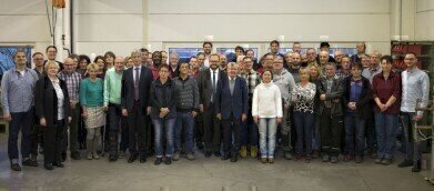 The two managing partners of GFL, Ulrike Mischel (3rd from the left) and Dieter Bubel (5th from the left). with the partner Rolf Mischel (l.). Lauda was present with the CEO and President Dr Gunther Wobser (middle), together with his father, advisory board member and partner Dr Gerhard Wobser (front row) and the CFO Dr Mario Englert (back, 3rd from left).