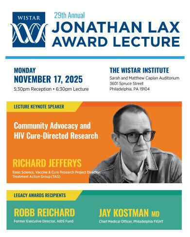 Established by The Wistar Institute and Philadelphia FIGHT to honour activist Jonathan Lax, the lecture series has featured leading figures in HIV research, including Nobel Laureates Drew Weissman and Françoise Barré-Sinoussi, Mike McCune of the Gates Foundation, and Anthony Fauci.