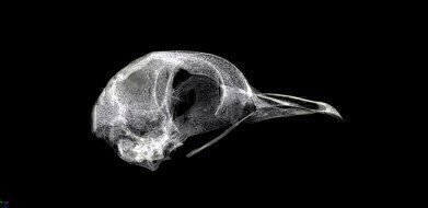 Bird skull scanned using X-ray microtomography, which reveals the complex internal architecture of bird bone. This is both strong and lightweight, and can inspire engineering design in structural components in aerospace.