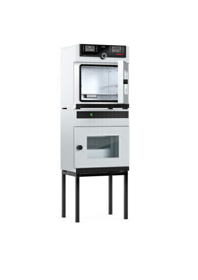 Together with the speed-controlled vacuum pump, the vacuum oven VO forms an unbeatably energy-efficient duo. The pump is perfectly tidied away in the matching base cabinet. Typical applications include powder and granulate drying, drying of cultures and probiotics, preservation and dehydration of food and the drying of electronic components.