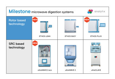 Digestion systems sometimes lack a particular specification such as capacity and temperature capability however three new Milestone microwave instruments from Analytix complete a family of seven systems that ensure all application requirements are met.