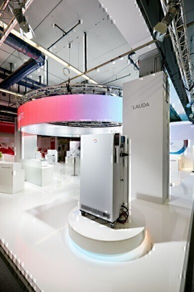 Eye catcher at the fair: The Integral process thermostat in the new Lauda product design. -