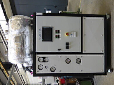 The heat transfer system incorporates two thermostatic circuits. While the first circuit controls the temperature in a buffer vessel, the second circuit controls the temperature in the test setup of the Max Planck Institute. Both circuits use the same medium and are connected to one another via the media storage unit. One additional customer requirement for the system was that the heat carrier could be used at temperatures of up to 350°C. Lauda selected a thermal oil capable of satisfying the demanding requirements of the material.