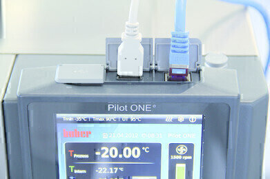 A new firmware is available for Huber temperature control devices equipped with the plug & play controller Pilot ONE. The firmware update provides the user with various new functions. These include for example the possibility to record process data on a USB flash drive. This new function allows you to have the major process values written directly on a connected USB flash drive. They are saved at intervals of 5 seconds. The data is stored in the form of a universally usable CSV file which can be easily evaluated and edited with programs such as Microsoft Excel®. Another new feature is the saving and loading of temperature control programs on a USB flash drive. Use it to save your internally generated temperature profiles and load them again when you need them – if applicable even at other devices equipped with a "Pilot ONE". The firmware update furthermore comprises an integrated data recorder which records the key operating parameters in the background in a buffer, similar to a black box. This data can be saved to the USB flash drive and transmitted. Thus, the service technician gets valuable information for optimum system setup or for troubleshooting.